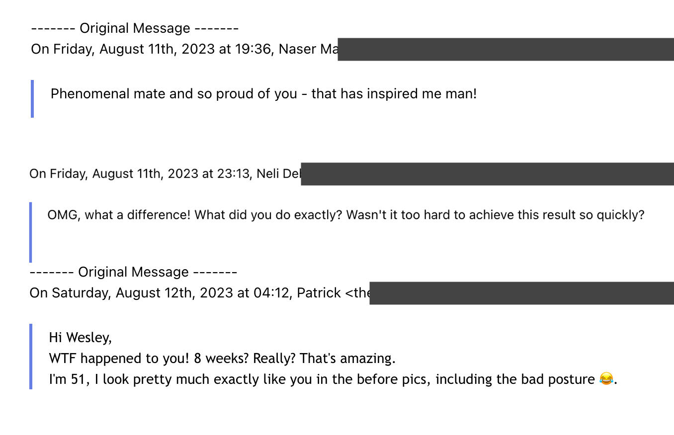 Reflecting on this, I realize that the best decisions are often the ones that prioritize our well-being.It's not just about looking good, but feeling amazing.It’s about energy, vitality, and unlocking a life where pain doesn't dictate your pace.Now, if you're where I was, I've got a piece of advice:Dive into my journey.Read every word I send your way over the next 8 days.Believe in the transformative magic of determination…The right guidance…And sheer will.Flip the script on your life.As I did.I’ll be waiting in your inbox.